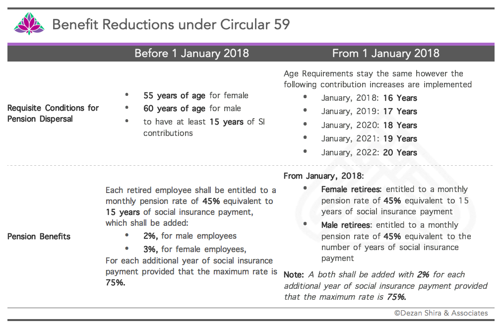 Ms. Tran Thi Thuy Nga, head of the Social Insurance Department, has indicated that the number of social insurance participants is only 20 percent of now, meaning the remaining 80 percent will not have pension after retirement. Despite share of the Vietnamese population receiving pensions being low, benefits have been reduced under the Circular 59. In particular, the requisite annual contributions have been increased in a manner that may postpone retirement.