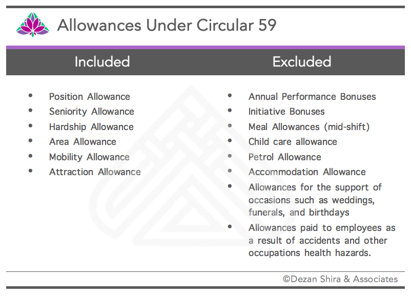 The following allowances should be noted for their inclusion or exclusions from employees calculable salaries: