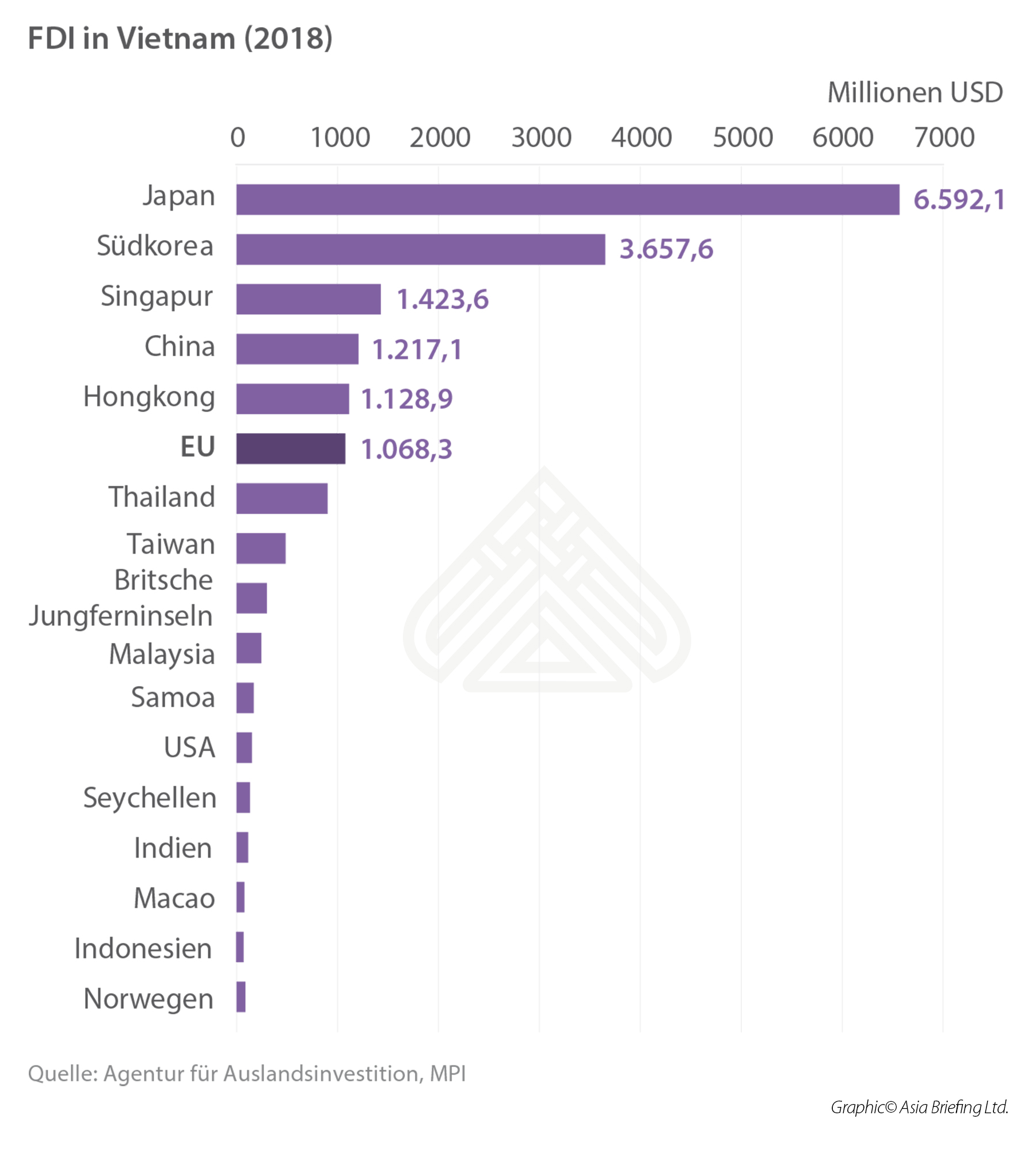 Ein Großteil der EU-Investitionen wurde in Gebieten mit guter Infrastruktur wie Hanoi, Quang Ninh, Ho-Chi-Minh-Stadt, Ba Ria-Vung Tau und Dong Nai getätigt. 24 EU-Mitgliedstaaten sind in Vietnam investiert, wobei die Niederlande an erster Stelle stehen, gefolgt von Frankreich und Großbritannien.