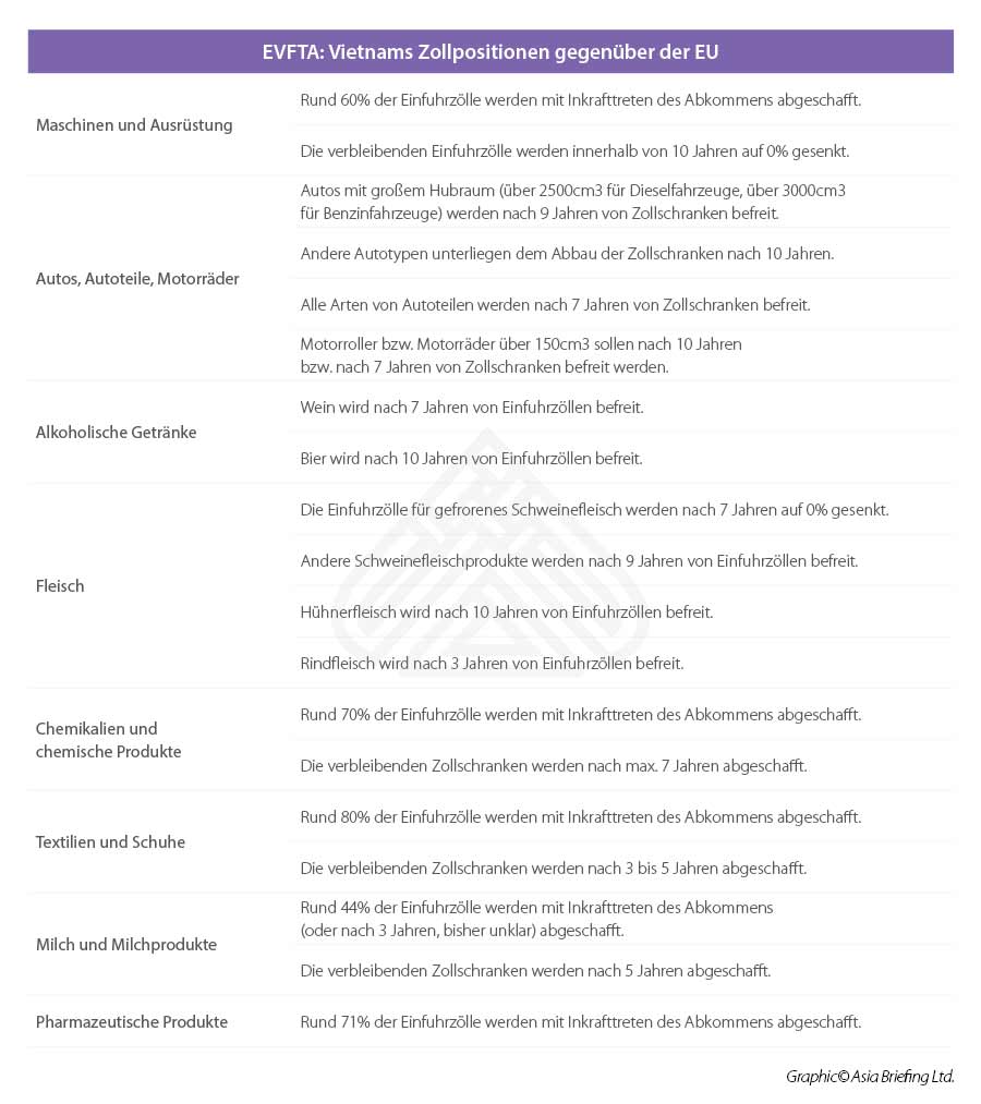 * Übersicht über den Abbau von Zollpositionen im Zuge des EVFTA: