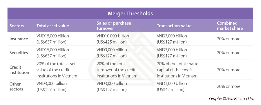 - Total assets of one of the parties in Vietnam is at least VND 3,000 billion (US$128 million);