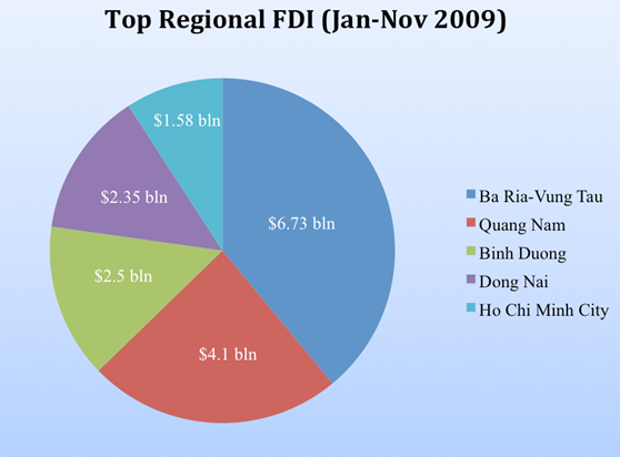 The province has so far managed to repeat this success in the current year. According to Vietnam’s Foreign Investment Agency, Ba Ria-Vung Tau attracted US$2.16 billion of FDI for 20 projects in Jan-May 2010, 30 percent of Vietnam’s total and the highest of any province in Vietnam.