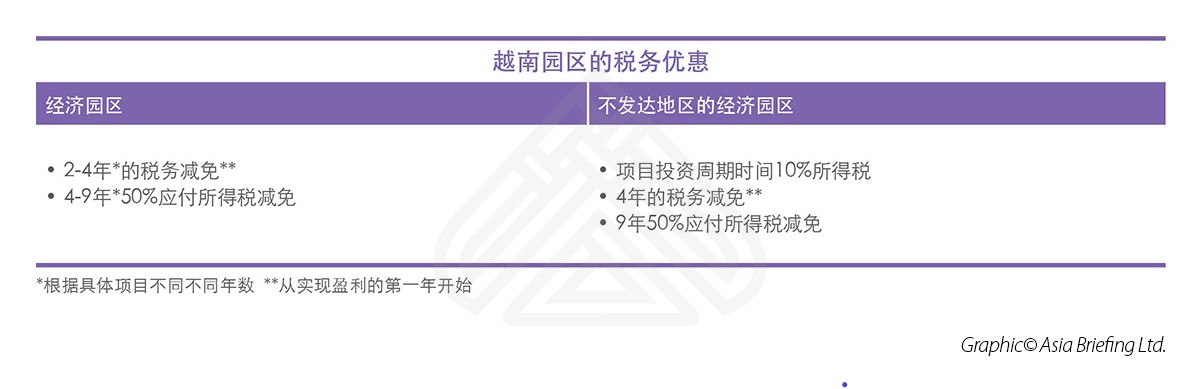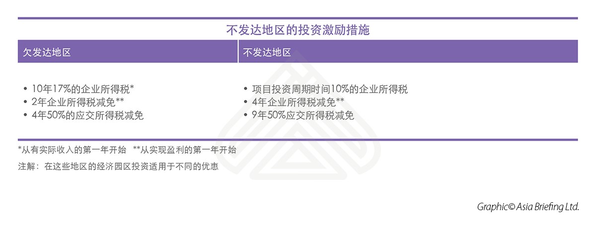投资者只有在目前被列为欠发达或者不发达地区投资才可以享受以上所列税收激励政策。政府法令118/2015/ ND-CP有相关越南全国各地投资的激励措施,也可以向有关机构咨询。从事低附加值生产的企业往往最适合利用这些优惠。随着越南继续快速引进外国投资,越早进入市场的企业越能领先于竞争者。