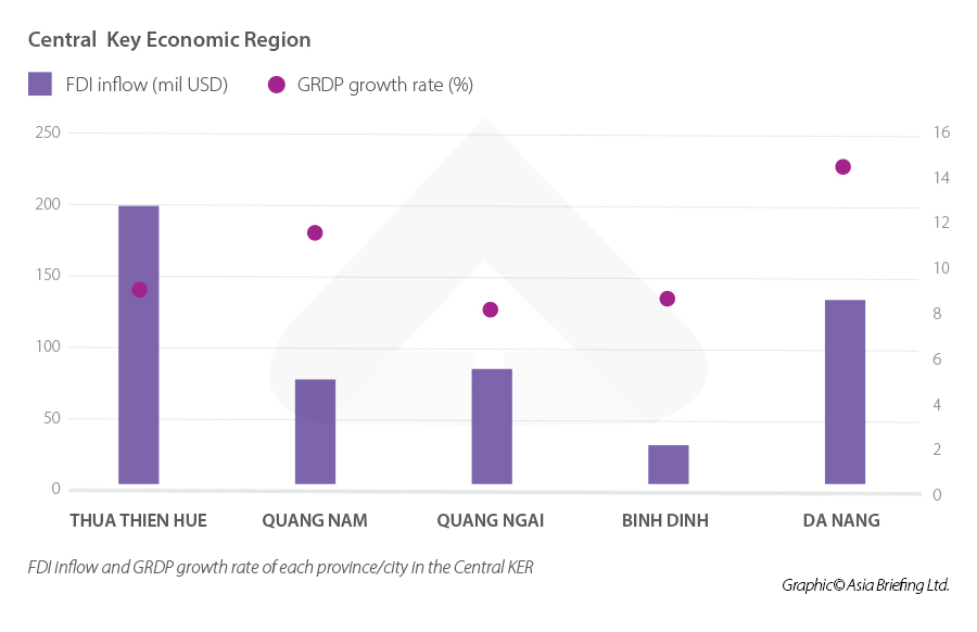 The central KER includes five provinces and cities: Thua Thien Hue, Quang Nam, Quang Ngai, Binh Dinh, and Da Nang. This is the third-largest economic region in Vietnam. This region has a vast seaport, which offers great potential for shipping and tourism.