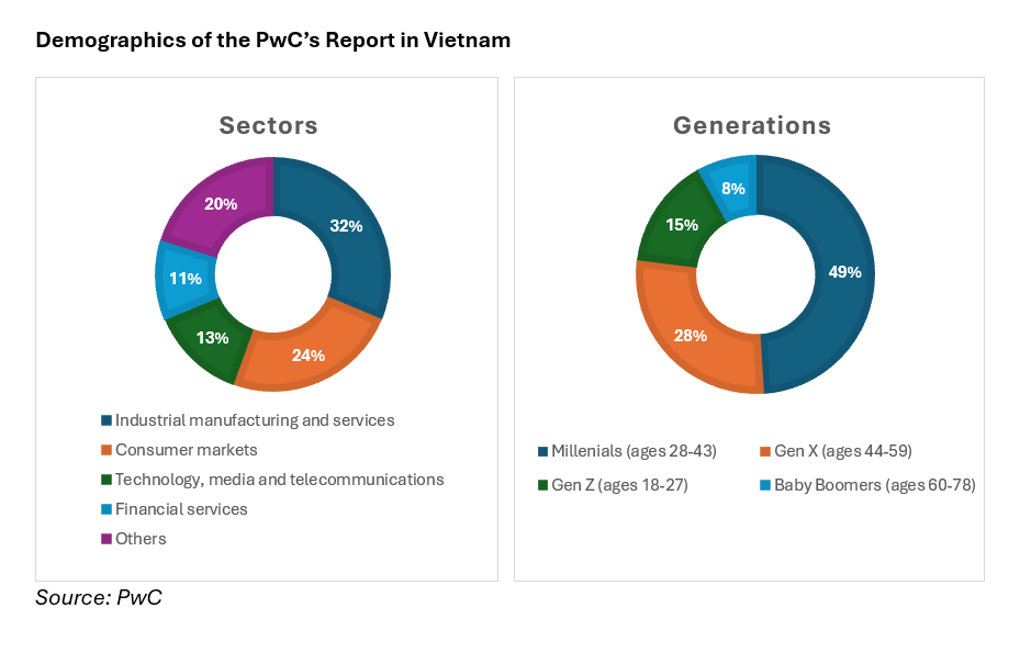 An der Umfrage nahmen 1.000 Befragte aus Vietnam (56 Prozent davon Männer und 44 Prozent Frauen) von insgesamt 19.500 Individuen aus der gesamten Region Asien-Pazifik teil. Sie untersuchte die Ansichten der Mitarbeiter hinsichtlich der Nachhaltigkeit des Unternehmens, der Entwicklung von Fähigkeiten, neuer Technologien, Klimainitiativen und Dynamik am Arbeitsplatz.