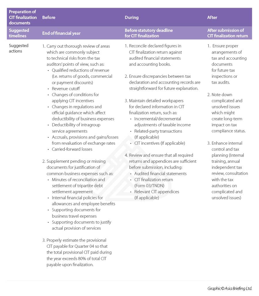 In light of the above analysis, taxpayers should ensure they are prepared for the annual tax finalization, not only to comply with the statutory regulations but also to mitigate the risks of being challenged by the tax authorities in future tax audits.