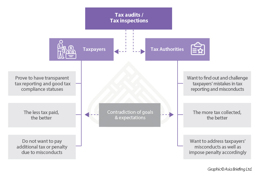 The tax authorities’ goals, on the other hand, are to find out and challenge taxpayers’ mistakes in tax declarations as well as impose additional tax and penalties on misconduct. Frankly speaking, the tax authorities do have KPIs for their tax officers. The tax officers’ performance is measured on the level of additional tax and penalty that they can impose as well as the level of taxpayers’ mistakes or misconduct found during tax inspections or tax audits at the taxpayers’ premises.